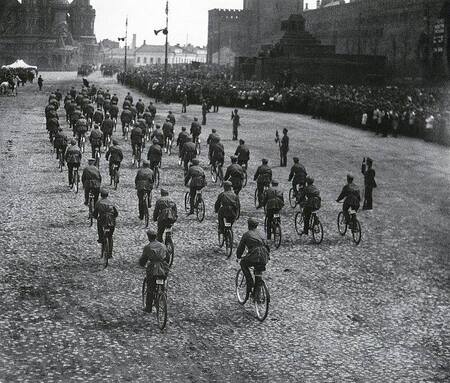 1. Секретарь Президиума ЦИК СССР А. С. Енукидзе принимает парад физкультурников на Красной площади. 1926 2. Парад велосипедистов. 1924-1925