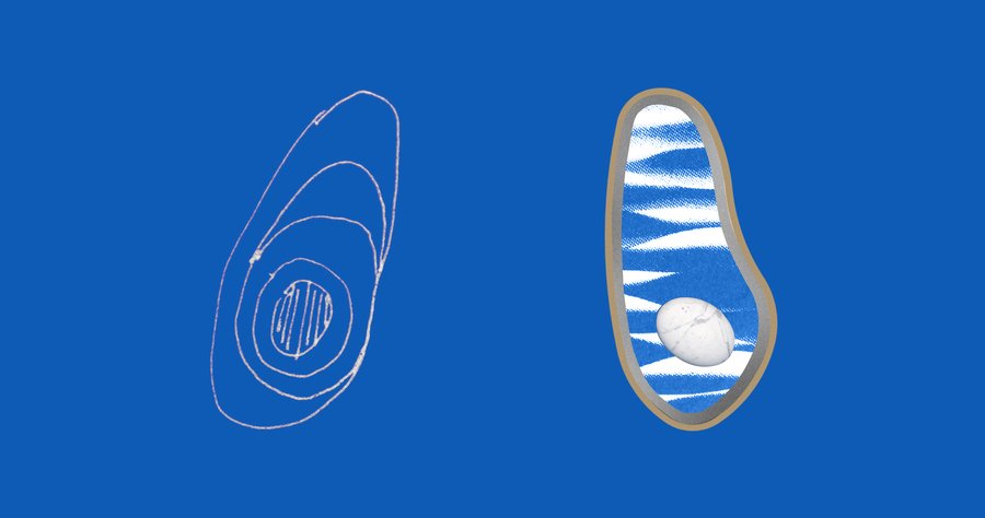 Так, упомянутые ранее мягкие формы, точка на карте и лед стали причинами для выбора особенного узора, создаваемого в замерзающих водоемах под воздействием камней, стволов деревьев или коряг (= особенного пути, неравномерно и концентрически огибающего стихийные точки на карте).