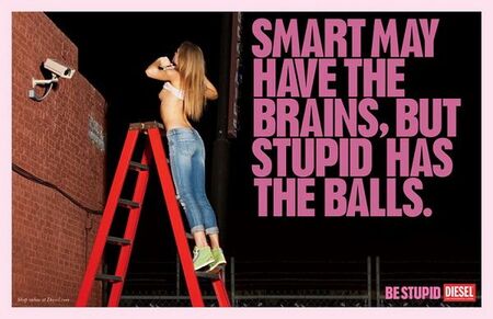 Diesel — бренд итальянской одежды, тоже провокационно использует образы и заголовки. Компания часто идет против социальных норм, которые могут сковывать. Все стремятся стать инфлюенсерами? Бренд говорит, что лучше быть подписчиком и трогать не только свой телефон. Бренд также бросает вызов устоявшимся стандартам и делает рекламную кампанию против границ.