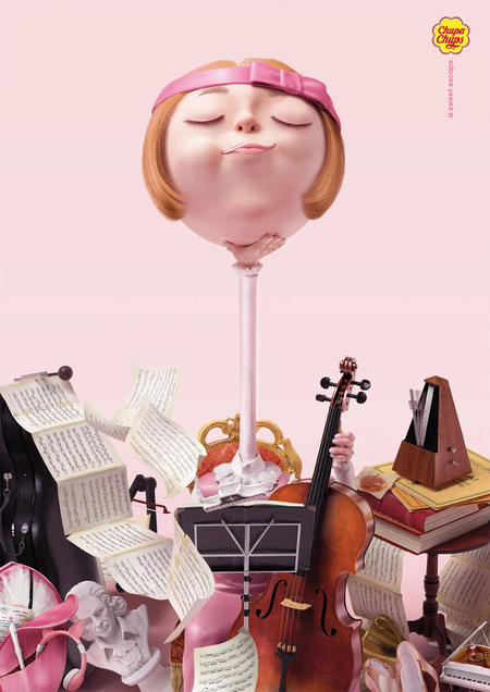 А вот знаменитый бренд Чупа Чупс использует сюрреализм, чтобы показать, что детям стоит освободить голову и отдохнуть, скушав их леденец. Они соотносят форму головы с формой сладости.
