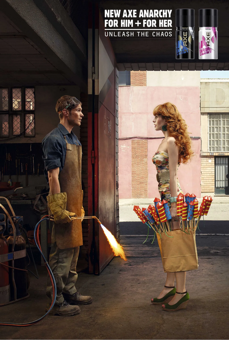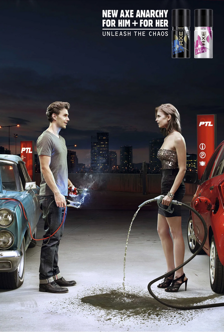 Вот реклама новой линейки продукции дезодорантов «для нее» и «для него», которая показывает влечение между людьми, которое может привести к хаосу.