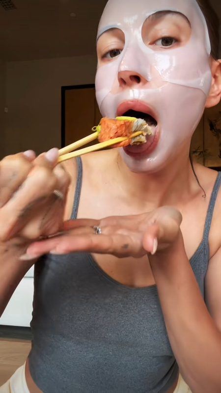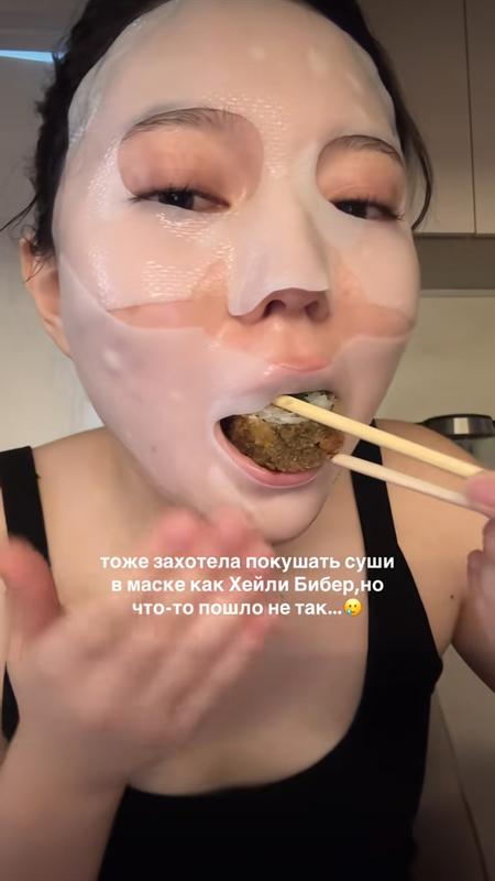 Показательный пример — видео Хейли Бибер, где она ест суши в уходовой маске. На первый взгляд это был спонтанный и бытовой момент, но он мгновенно стал вирусным. Девушки начали искать маску, которая бы не сползала и не мешала есть, а затем массово выкладывать подобные ролики. Уже позже выяснилось, что на Хейли была новая маска от её бренда, а видео — скрытая промо-акция. Никаких логотипов, упоминаний или рекламных элементов не было. Тренд возник благодаря огромному влиянию Хейли и особенностям визуального контента, который легко повторить. Этот случай хорошо демонстрирует, как Rhode работает с механизмами подражания и социального доказательства.