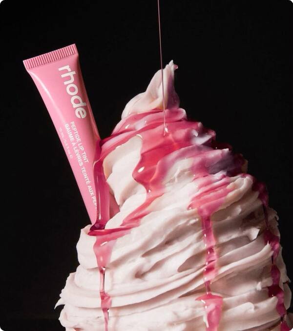 Кроме того, сладкие мотивы — сахар, глазурь, мёд — неизменно вызывают ощущение уюта, удовольствия и «маленькой награды». Такие ассоциации помогают бренду выстраивать эмоциональную связь. Продукт воспринимается как способ побаловать себя, как приятный ритуал. В контексте эстетики Rhode, где ключевым является сияние и мягкость, пищевые образы становятся органичным инструментом передачи настроения и ощущений.