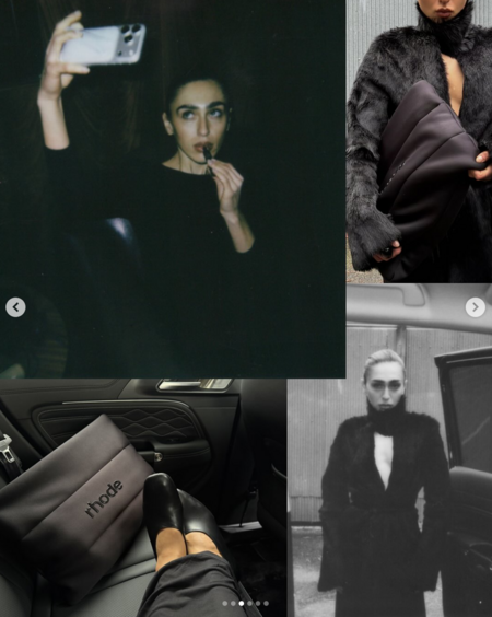 Образы, которые Rhode публикует в социальных сетях, создают ощущение повседневности и «живого» лайфстайла. Реклама здесь практически не воспринимается как реклама. Фотографии выглядят так, будто это личный блог девушек, которые делятся моментами из своей жизни. В некоторых постах даже нет продуктов бренда. И именно эта ненавязчивость формирует ощущение доверия.