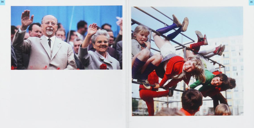 Фотоальбомы Восточной Германии изображали счастливое и удовлетворенное бытие людей в условиях социалистической системы. Персонажи на фотографиях обычно улыбались, демонстрируя любовь к жизни и веру в будущее. Такое идеализированное изображение имело определенное расхождение с реальным бытом, но соответствовало требованиям творчества в рамках социалистического реализма.