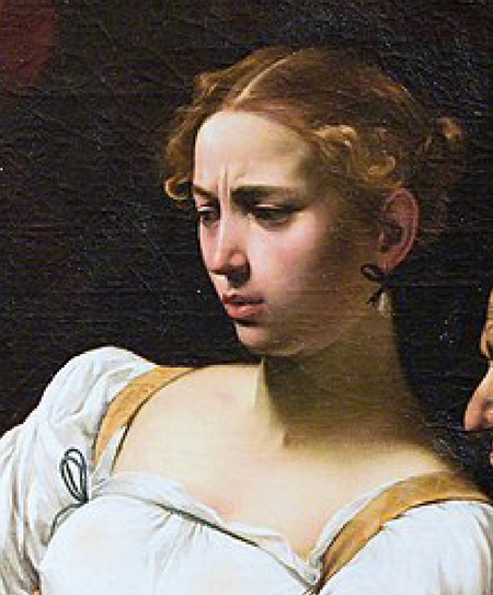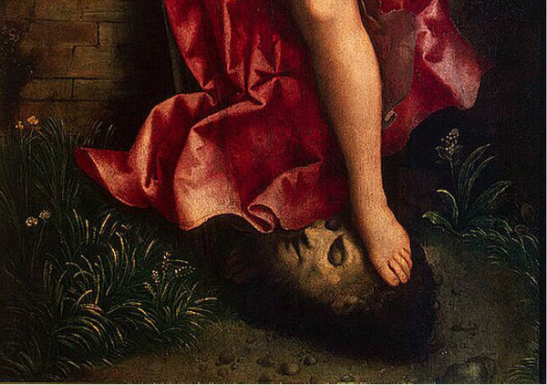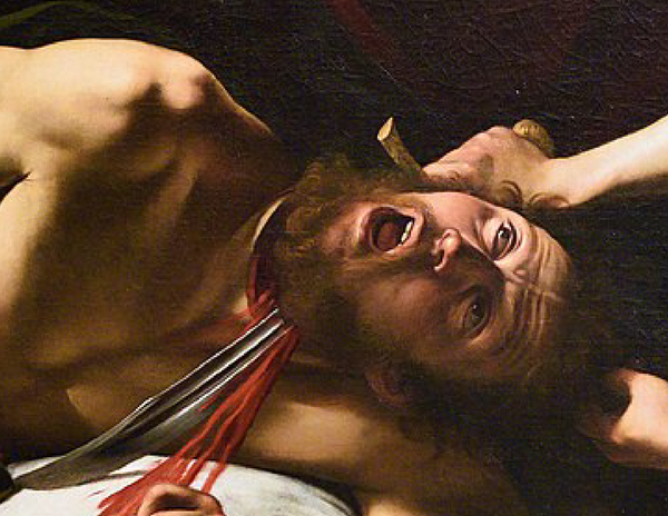 Караваджо изображает сам процесс совершения подвига. Это символ того, что спасение и победа даются нелегко, они требуют грязной, кровавой работы. Меч с усилием разрезает плоть, что усиливает реализм и ужас.