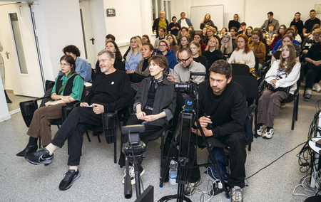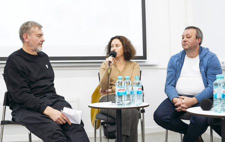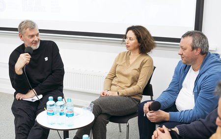 Модератором мероприятие выступил Евгений Корнеев — руководитель магистерского профиля «Искусство книги» в Школе дизайна НИУ ВШЭ. Графический дизайнер, арт-директор, основатель бюро «Раздизайн».