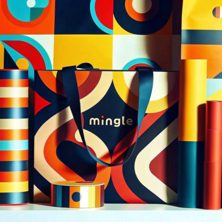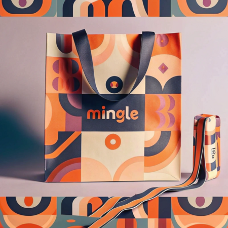 Шопперы сгенерированы при помощи Recraft. Промпт: colorful shopper with the logo of a brand named Mingle.