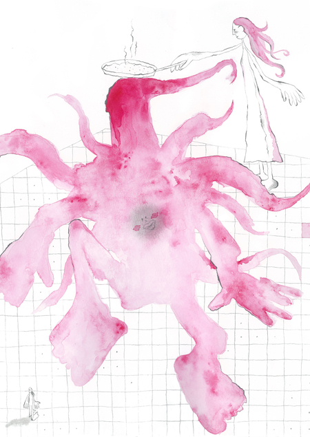в этой ситуации для меня девушки выглядят обезличенными и неважными, это я постаралась показать в своих иллюстрациях при помощи использования цвета, который переходит к героиням от солнца, месяца и ворона, наделяя их хотя бы какой-то значимостью