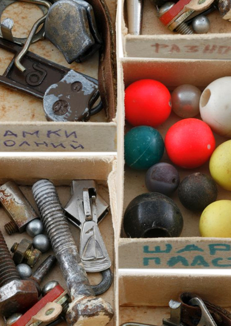 Разбирая перед переездом квартиру в панельном доме, в котором прошло детство одного из художников, авторы нашли шкафчики, склеенные из спичечных коробков. Шкафчики с коллекционерской тщательностью наполнены вещичками, деталями вещичек, исключенными из обихода, иногда разобранными до самой последней стадии — пишущие элементы от шариковых ручек, головки от аэрозолей, крошечная самодельная терочка и еще масса удивительных предметов, сохраненных во времена дефицита в надежде, что они снова понадобятся, на всякий мелкий случай. Сейчас масштаб внимания по отношению к этим объектам изменился, мелкие предметы срослись в ностальгическое целое. Так из них выстроился целый панельный микрорайон.