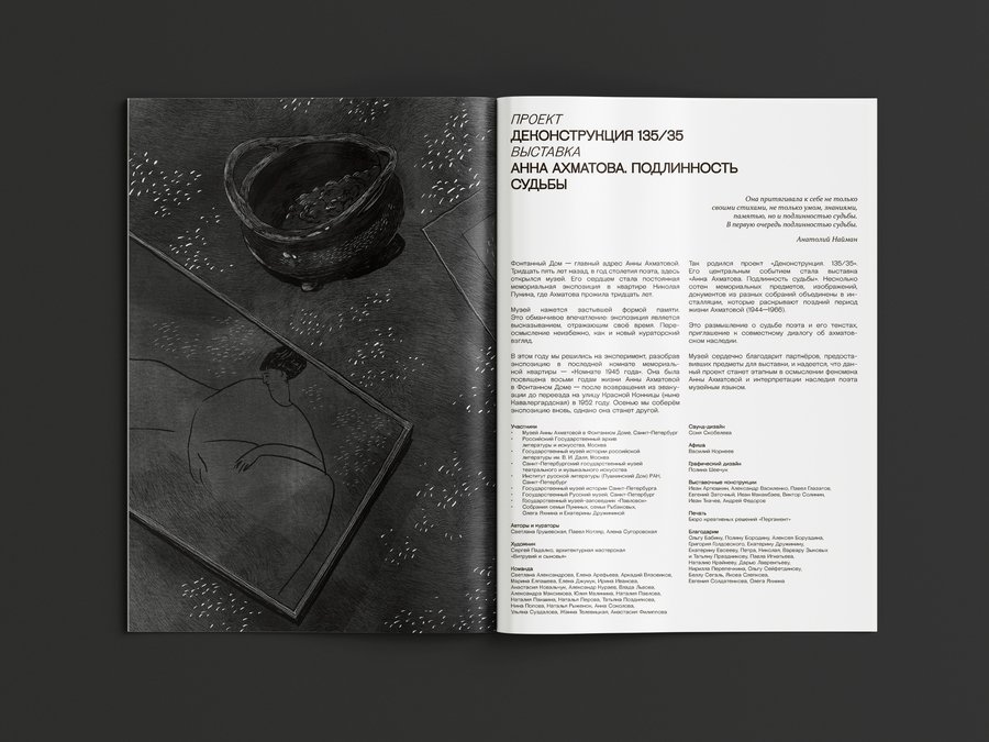 Путеводитель для выставки «Деконструкция 135/35. Анна Ахматова. Подлинность судьбы» в Музее Анны Ахматовой в Фонтанном Доме.