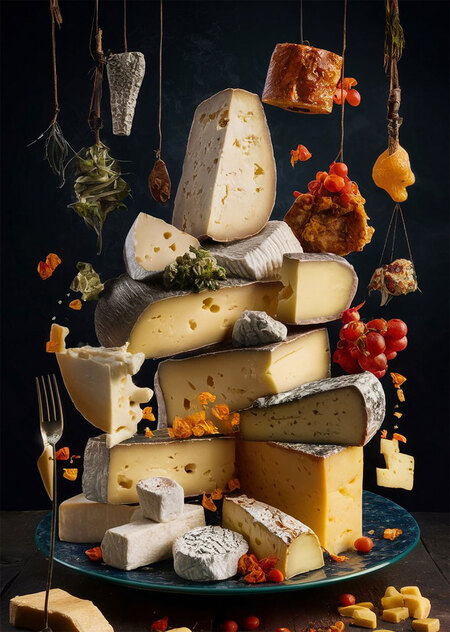 Обложка проекта — генерация нейросети Ideogram по промту: Many types of cheese on a plate
