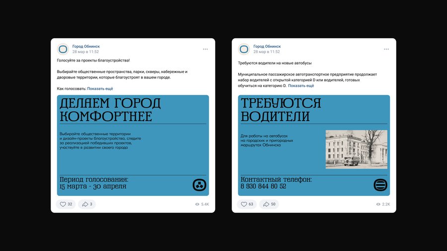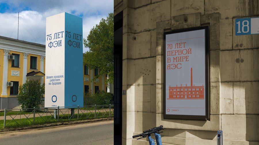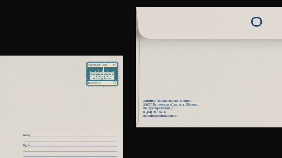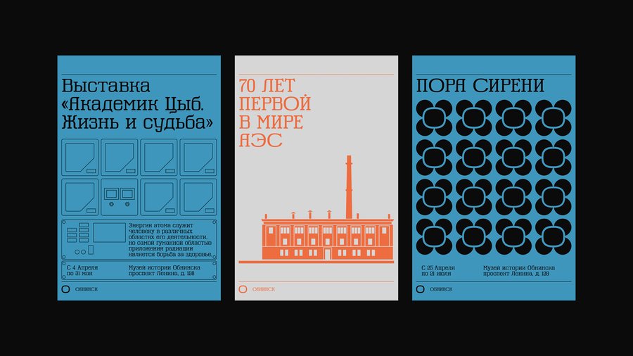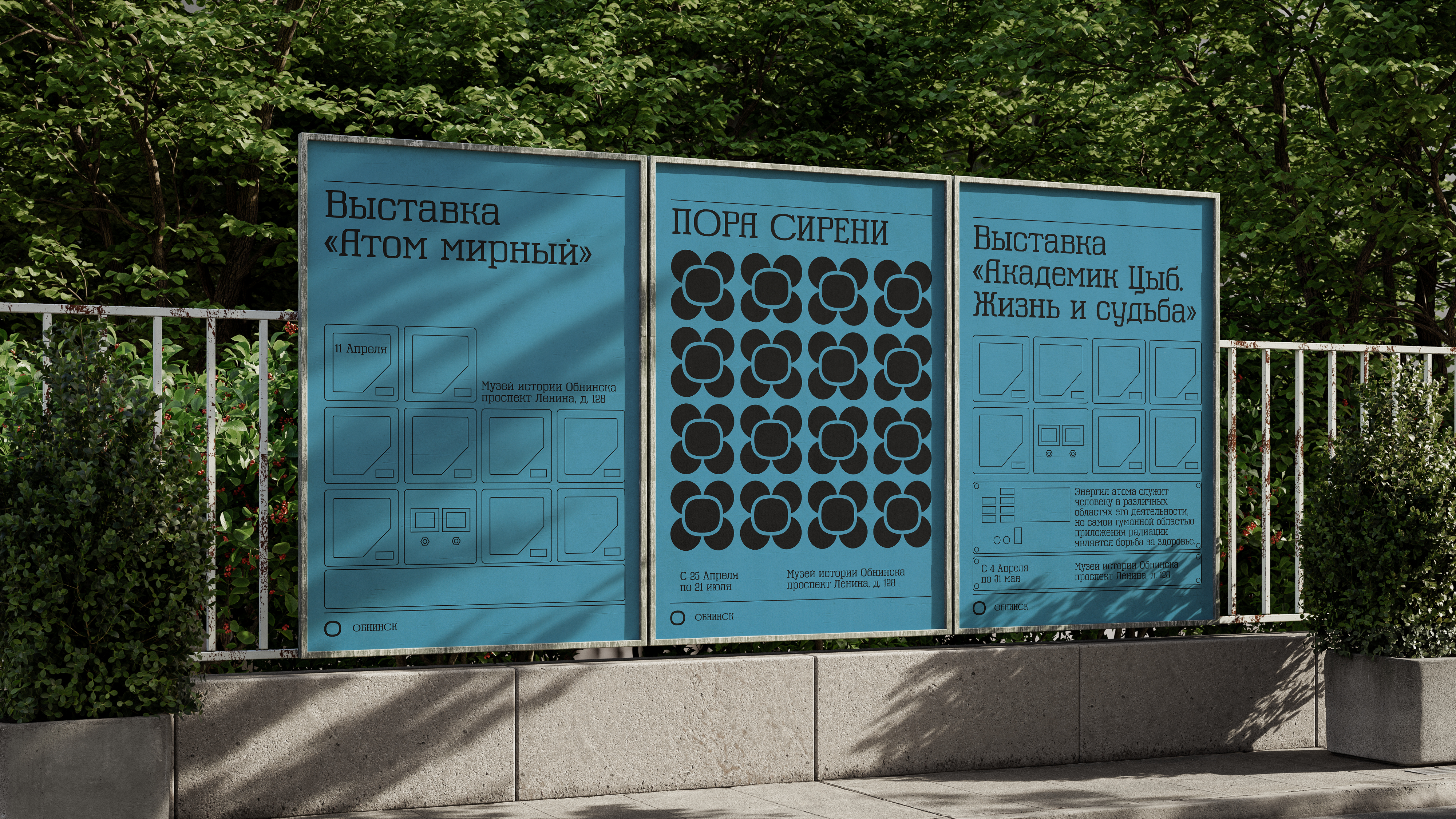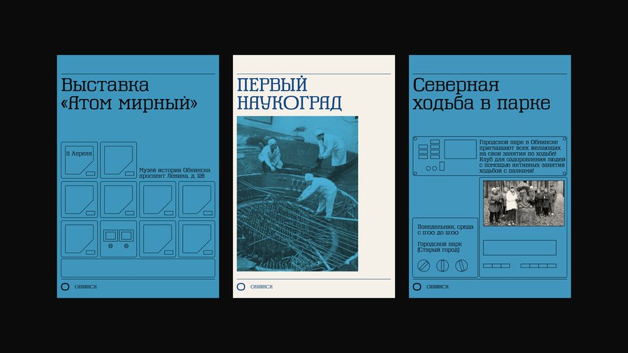 В основе визуального брендинга лежит фирменный шрифт «АМ-24». Шрифт был вдохновлен контрастом между ампирной архитектурой Обнинска 50-х годов и простыми кустарными вывесками, которые находились на этих величественных зданиях.