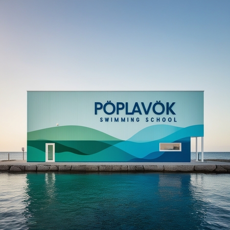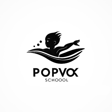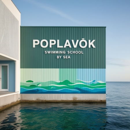 /imagine prompt: create a minimalistic and modern logo for the brand of swimming school near the sea «POPLAVOK»