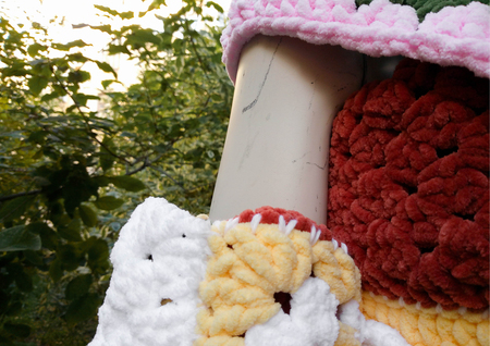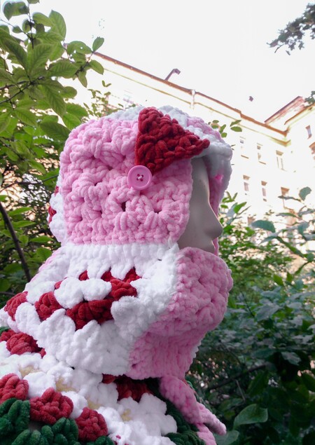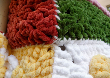 Плюшевая пряжа и цветочные мотивы на латах подобны природному спокойствию, напоминающему, что нежные цветы лучше острейших мечей.