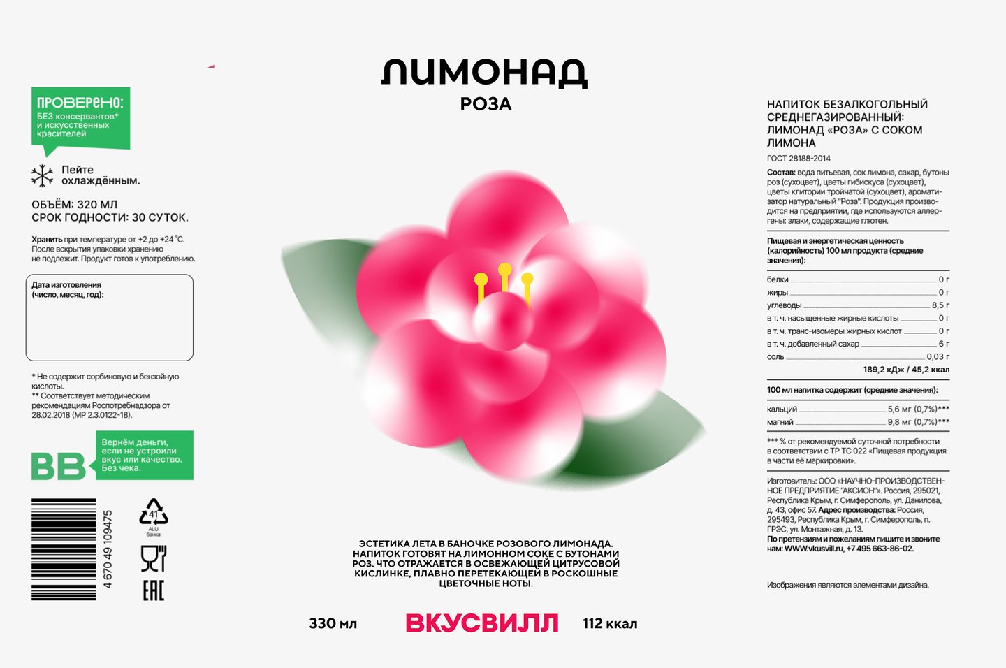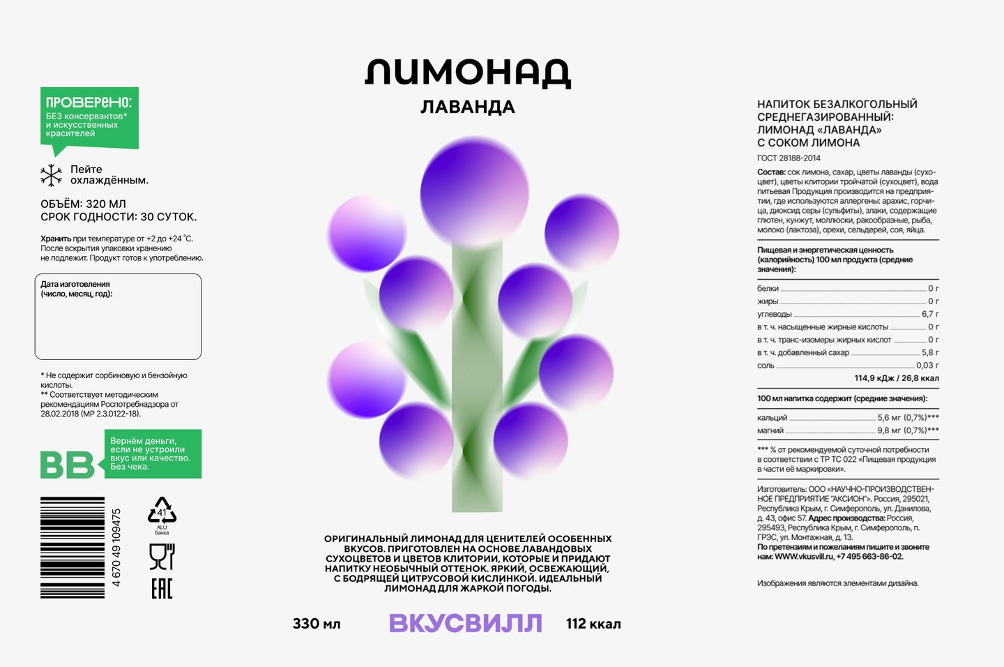 В дизайне переданы основные вкусы — смородина, роза и лаванда — с помощью мягких круглых форм с градиентами, создающими ощущение сочности, свежести и легкости. Каждый цветовой переход символизирует плавное раскрытие вкусов, а округлые элементы придают дизайну гармоничность и натуральность
