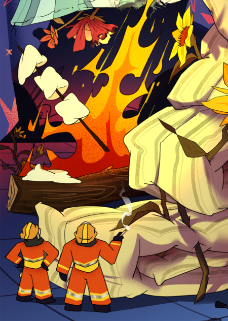 Огонь от костра является основным символом в работе. В жизни он также обычно вызывает различные, противоречащие ощущения.