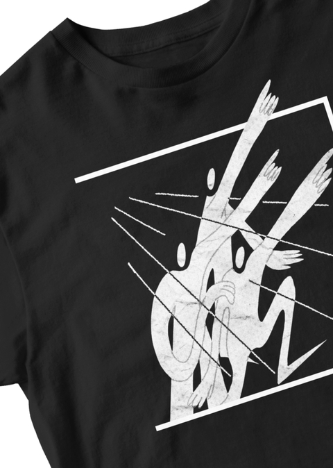 мне хотелось, чтобы мерч плавно вписался в уже существующую айдентику театра, поэтому я сохранила чёрно-белую палитру, а сами иллюстрации вписала в рамку логотипа.
