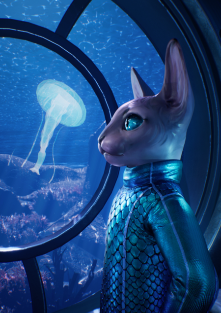Капитан Кот — отважный юный капитан и исследователь морских глубин. Обеспокоенный судьбами подводных обитателей, он бороздит бескрайние океаны, помогая оставленным в беде.