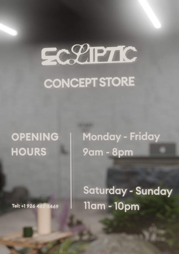 Дизайн пространства магазина Ecliptic — это воплощение гибридности: здесь бетонные плоскости сочетаются с островками живой зелени. Продукты представлены на зеленых оазисах и подиумах из камня дерева и металла. Данное решение символизирует диалог между яркой, натуральной природой и «холодным», структурным городом.