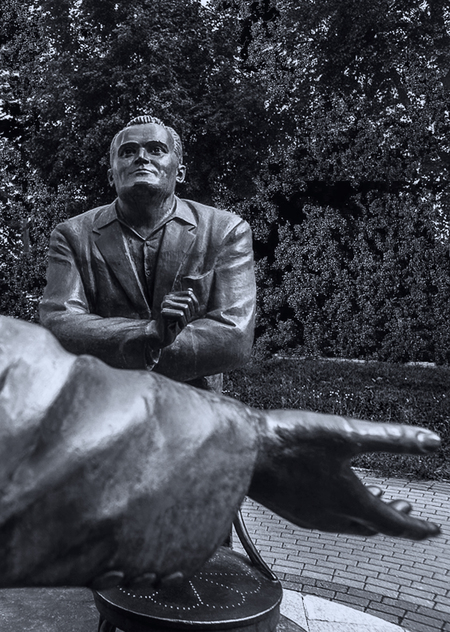 Скульптурная композиция, рассказывающая о встрече Константина Эдуардовича Циолковского и Сергея Павловича Королёва, установлена в калужском сквере на пересечении улиц, которые носят имена основоположников отечественного космического ракетостроения.