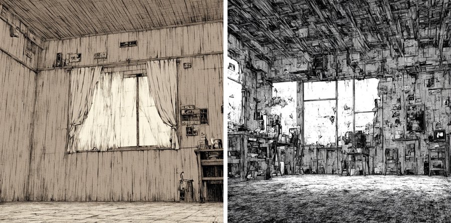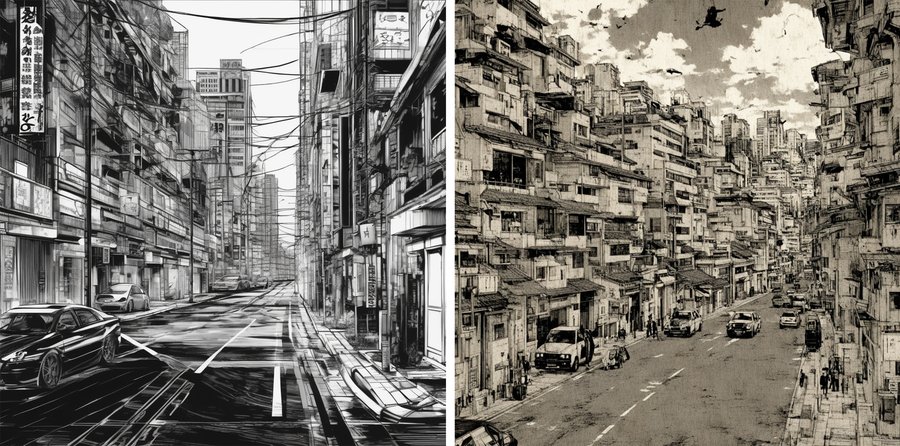 3. Не менее важный пункт. Если у вас пока нет своего стиля, а начать рисовать хочется уже сейчас, то можно на основе генераций по стилю мангаки создавать фоны для своих работ. Необходимо уточнить, что при использовании такого метода работы скорее всего должны быть некоммерческими и при возможности указанными с деталью о том, что они созданы на основе генерации стиля изначального автора в случае публикации (если есть возможность, то стоило бы спросить у автора разрешение на использование его стиля в таких целях, однако конечно это необязательно в силу трудностей связи). Однако это всё ещё прекрасный способ, если вы учитесь рисовать фоны и хотели бы перенять стиль какого-либо автора или кастомизирую сгенерированные изображения добавлением цвета, дополнительных деталей, персонажей и многого другого.