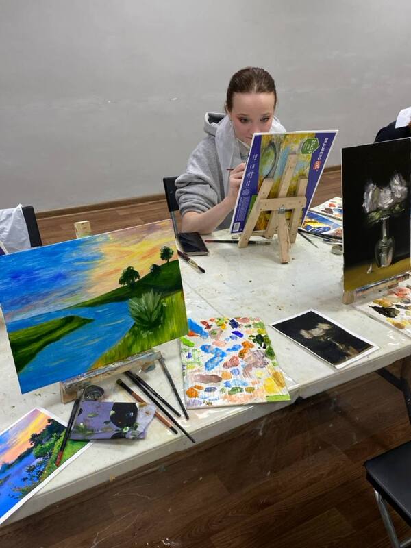 Картина изображает живописный пейзаж с зелёными холмами, на которых расположены три дерева. Передний план занимает река, текущая между холмов. Небо окрашено в яркие цвета заката, создавая контраст с тёмной рекой. Светлые облака добавляют динамичности композиции. Авторский замысел заключается в передаче спокойствия и умиротворения природного ландшафта в момент заката. В данном произведении можно заметить стремление к гармонии и простоте форм, что характерно для классицизма. Прямые линии горизонта и плавность силуэтов деревьев могут отражать влияние этого направления на композиционное решение картины.