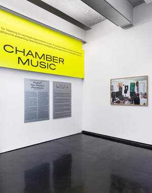 Еще один хороший пример из нескольких выставок в Chamber Music: «For Musical Procedures» — это выставка, посвященная Presto!? , экспериментальному миланскому лейблу звукозаписи, характеризующемуся нестандартной перспективой и острым диалогом с современным искусством и дизайнерскими практиками.