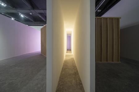 Многие работы на выставке, которые нельзя отнести ни к картинам, ни к скульптурам, представляли собой архитектурный войлок и акустические панели, создающие то, что Джонс называет «активными поверхностями». Поглощая звук, эти материалы влияли на акустические свойства окружающей среды и приглашали к участию в воплощенном способе восприятия. Выступающие из стены панели были одновременно частью архитектурного пространства, которое они трансформировали, и отдельным от него.