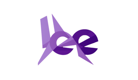 Вторая версия: mj: Abstract geometric logo spelling «Lee», composed of overlapping and intersecting sharp, angular shapes and circular forms in varying shades of deep purple. The design features bold, spiky triangular elements radiating from the left and center, integrated with smooth, rounded lowercase «e» letters, creating a dynamic, energetic, and slightly aggressive visual. The composition is minimalist, with a clean white background and a strong focus on the interplay of translucent purple layers, modern typography, and a sense of motion. Futuristic, edgy, and visually striking branding mark