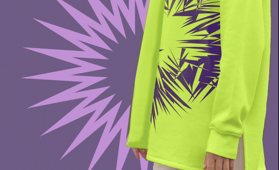 mj: A full-body shot of a striking woman standing confidently in a T-shirt designed for merchandise, featuring abstract spiky geometric forms in bright lime-yellow and deep purple, modern punk aesthetic, sharp angular shapes, jagged abstract pattern, edgy contemporary design, high contrast color scheme. She has an unconventional, ethereal appearance piercing eyes, freckled skin with rich texture, delicate pores, and a soft, realistic leather-like skin surface. Her blonde hair falls effortlessly around her face. She is draped in translucent, wet, heavy plastic that clings to her silhouette, adding a surreal, dream-like texture. Pale pink and light blue tones illuminate the scene with soft lighting, creating an other-worldly glow. The T-shirt’s fabric is hyper-realistic, with visible threads and texture details. The photo exudes a psychedelic luxury aesthetic, a blend of alternative streetwear and high fashion editorial. Hyper-detailed, high resolution, dramatic hard lighting, a wide-angle view that emphasizes her powerful presence a perfect blend of raw and delicate, futuristic and ethereal.