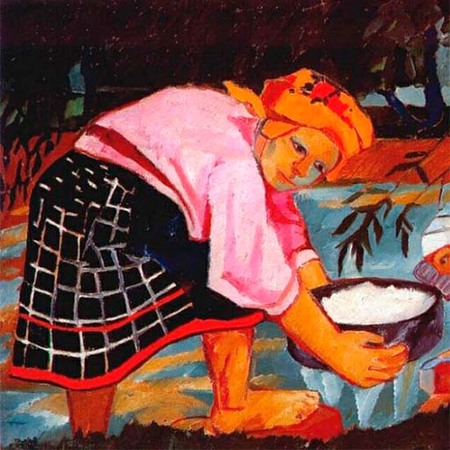 1. Наталья Гончарова, Крестьянка, 1910 2. Наталья Гончарова, Беление льна, 1908