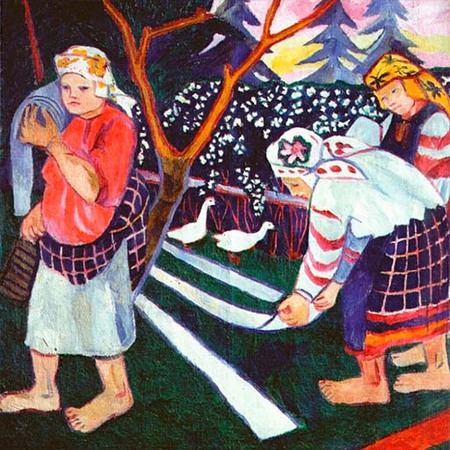 1. Наталья Гончарова, Крестьяне собирают яблоки, 1911 2. Наталья Гончарова, Жатва, 1911