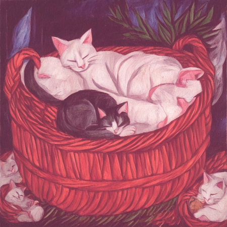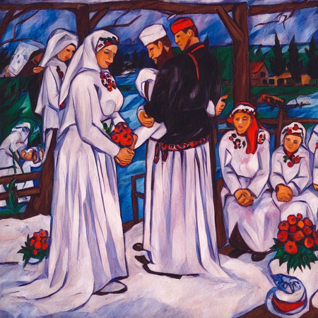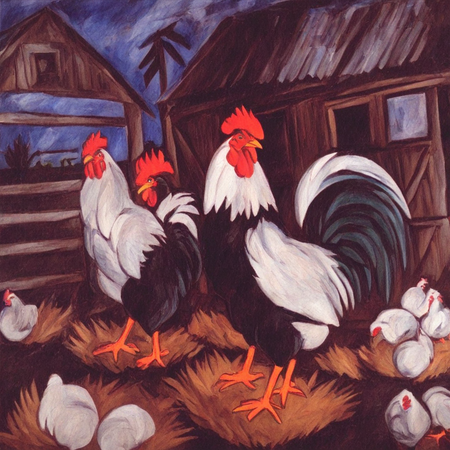 В сценах с животными — будь то петухи или кошки, чьи силуэты распадаются на цветовые плоскости — прослеживается влияние кубофутуристических экспериментов Гончаровой. Интересно, что нейросеть по-разному интерпретировала различные мотивы — в некоторых работах сильнее проявилось влияние лучизма, в других — более графичный стиль с яркими цветовыми пятнами. Несмотря на то, что некоторые нюансы ручной живописной техники Гончаровой оказались сложны для полного воспроизведения алгоритмом, серия в целом успешно передает суть ее художественного метода, предлагая современное прочтение авангардных идей через призму искусственного интеллекта.