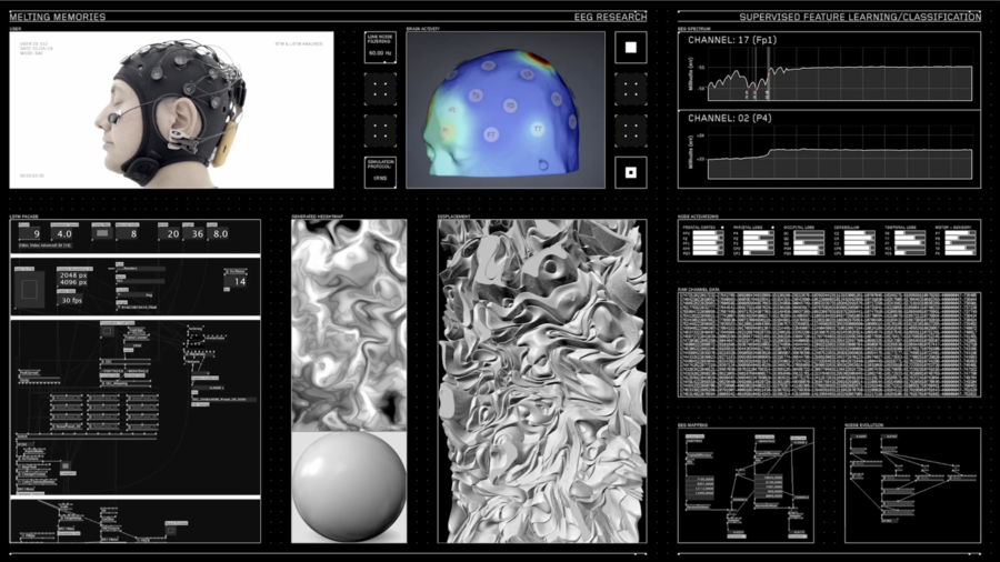 Используя данные о мозговой активности во время воспоминаний, художник создаёт иммерсивные медиаформы — от проекций до световых скульптур, визуализирующих то, что ранее оставалось невидимым.
