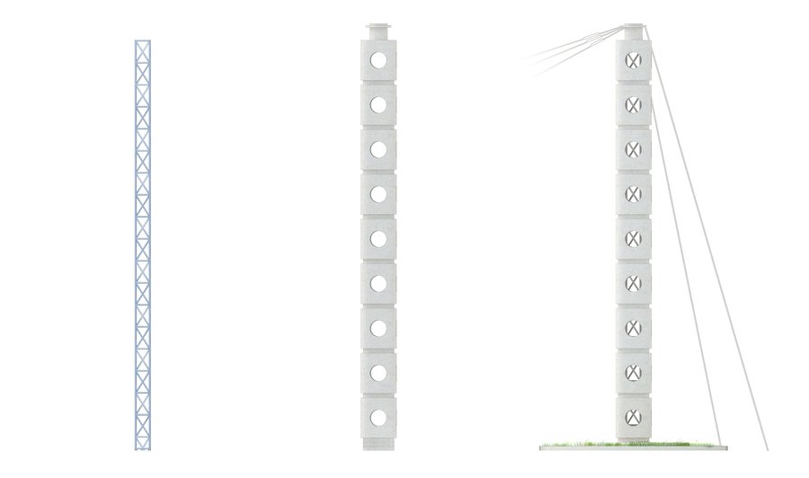 Башня для поддержки моста малого парка сделана из бетонных блоков, форма которых продиктована конструктивистскими орнаментами Степановой.