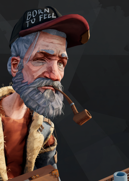 Из плоскости Олегыч перешёл в объем. Был создан скульпт персонажа. Затем была выполнена ретопология и вручную отрисованы текстуры.