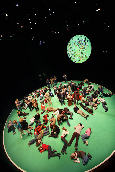 «Мы захотели, чтобы в театре оказался весь Берлин — фактически четыре миллиона человек. Пусть даже у каждого из них будет по две-три секунды времени. Мы подумали, если сделать круглую, как циферблат, вращающуюся сцену, то получится непрерывный поток людей, где каждый по очереди будет оказываться в потоке света и говорить: „Привет, меня зовут так‑то, и я очень увлекаюсь тем‑то“. И дальше следующий-следующий-следующий — как огромная машина […] потом мы решили, что можем пригласить на сцену всего сотню людей, которые бы представляли весь город».