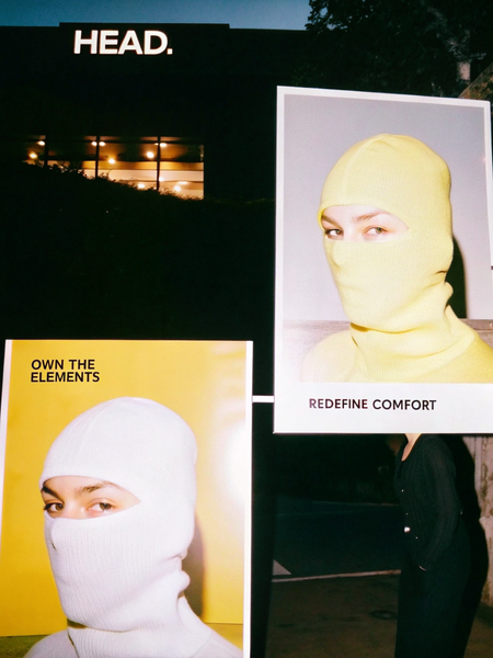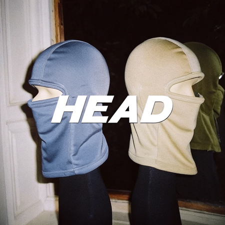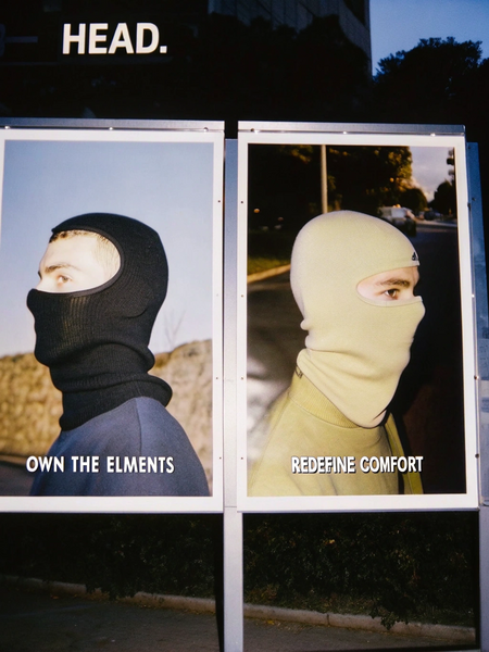 Prompt: Create a series of advertising posters for the balaclava brand HEAD. The posters should have a sleek, modern, and minimalist aesthetic, focusing on the product’s design and functionality. Use a bright color palette (black, white, gray) with bold typography featuring the brand name 'HEAD.' Highlight the balaclavas in a creative way: close-ups of textures, abstract representations, or stylized portraits of people wearing them in urban, outdoor, or sporty settings. Incorporate a subtle tagline like 'Own the Elements' or 'Redefine Comfort.' Ensure the visuals emphasize style, protection, and versatility while maintaining a premium and contemporary feel.
