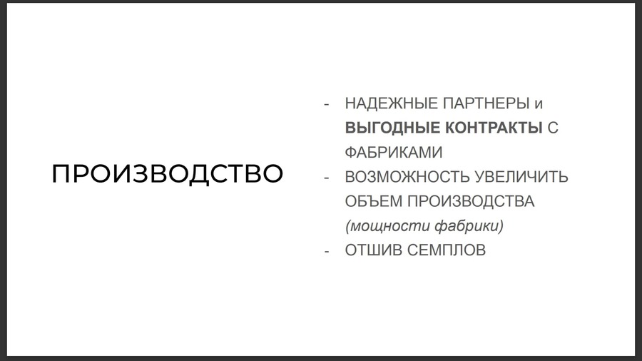 Для того, чтобы выводить на рынок полноценную замкнутую цепочку производства люкса и реализации данной фешн-продукции, необходим масштаб от 500 миллионов рублей. Однако в России эта цепочка еще долго не замкнется. Мы пока маленькие для этой отрасли и по объему масштаба рынка. Это законы математики.