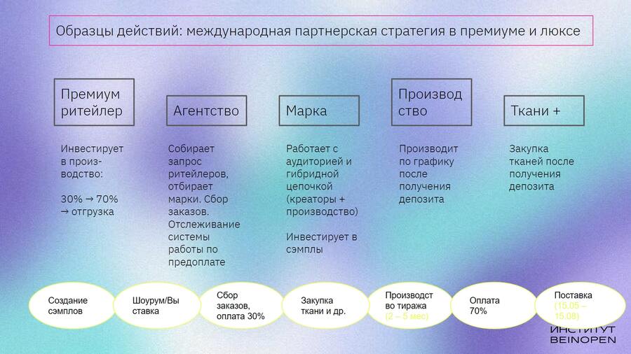 Менеджер проектов института Beinopen Анастасия Старикова рассказала о своих наблюдениях ситуации на рынке, а именно — как мультибрендовые ритейлеры в России работают с российскими марками: «спойлер, очень плохо, практически не работают».