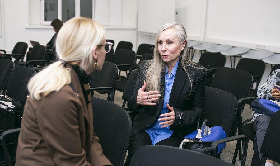 Спикер вкратце рассказала про свой долгий профессиональный путь. Она училась в Архитектурной академии в Новосибирске на дизайн костюма. После переехала в Санкт-Петербург, где пыталась основать свой бренд.