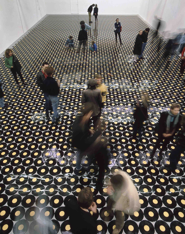 Центральная зона выставочного зала отведена для реконструкции перформанса Кристиана Марклея «Шаги». Посетители ходят по пластинкам, косвенно удостоверяя своё присутствие, это «следы» в прямом смысле слова. Потом пластинки могут быть прослушаны (в пространстве выставки звуковая документация проигрывается внутри микро-зала «Камера-обскура»). Присутствие лишено визуального воплощения, но служит необходимым элементом для возникновения художественной формы — косвенных следов.