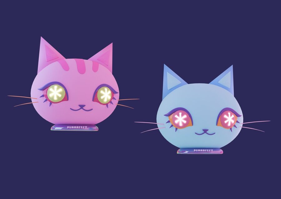 Промпт: Design a whimsical night lamp in the shape of a charming pink/blue cat head. The cat’s features should be playful and inviting, with large, expressive eyes that are represented by vibrant neon orange/pink flowers. These flower eyes should glow in the dark, creating a soothing and enchanting ambiance in any room.The overall design should be sleek and modern, with smooth curves and a soft finish that enhances the lamp’s appeal. Consider incorporating subtle textures or patterns on the cat’s head to add depth and interest. The lamp should be functional yet artistic, making it a delightful addition to a child’s bedroom or a cozy reading nook.