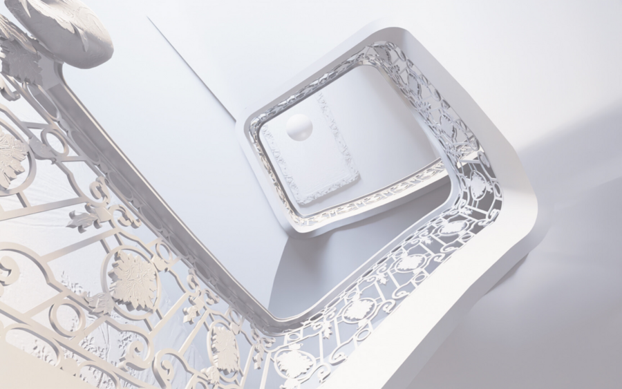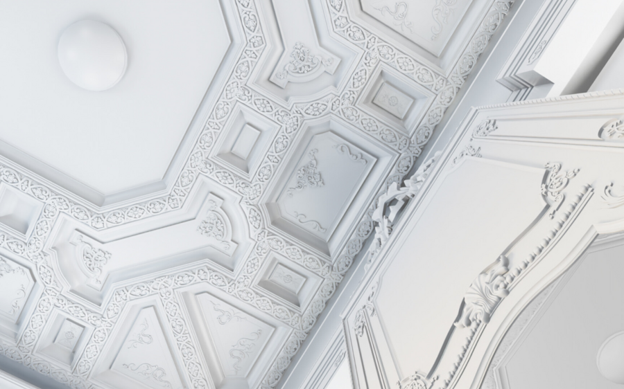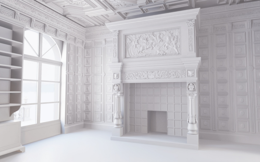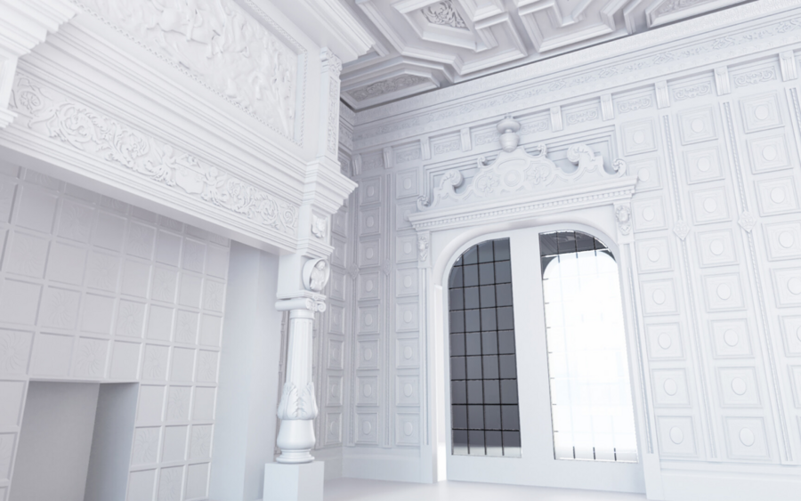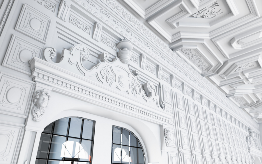 Современные 3D-художники способны моделировать исторические интерьеры — например, немецкая художница Шармин Кхан выполнила визуализацию реального исторического места в Брюсселе для реконструкции и реставрации замка XVIII века. Её задачей было точно передать детали интерьера согласно техническому заданию. Особенно ярко точность детализации заметна в моделировании кованных перил со сложным орнаментом, поэтому акцентирует внимание именно на части моделирования, уделяя текстурированию меньше внимания.