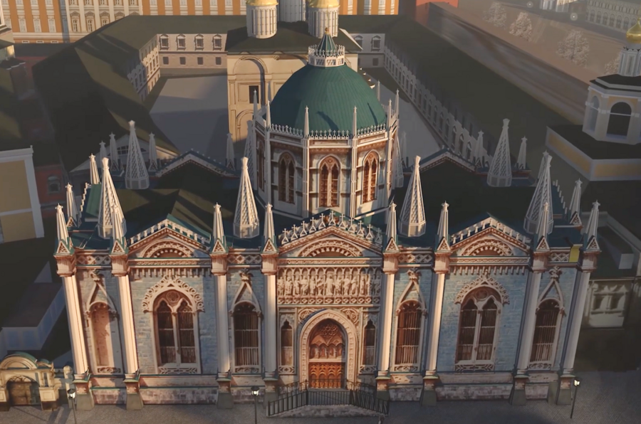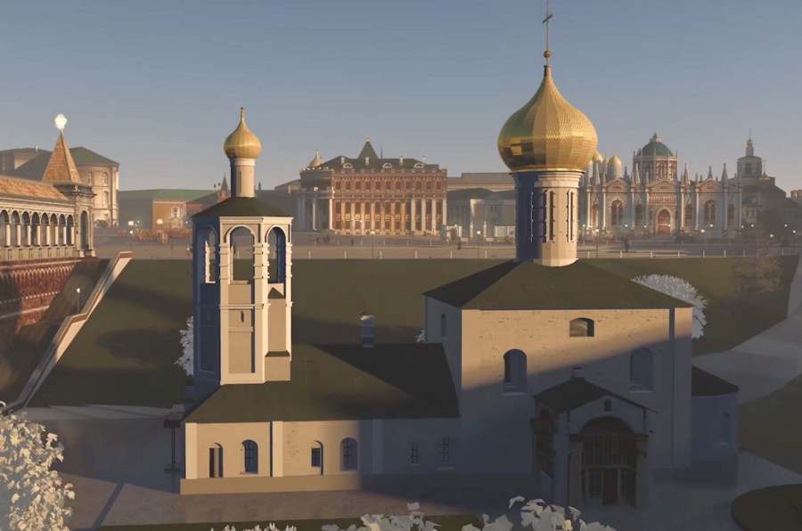 3D-визуализация: Церковь Св. Екатерины Великомученицы Вознесенского монастыря Московского Кремля, 1808 г., Малый Николаевский дворец, 1775., Церковь Константина и Елены, 1692 г.