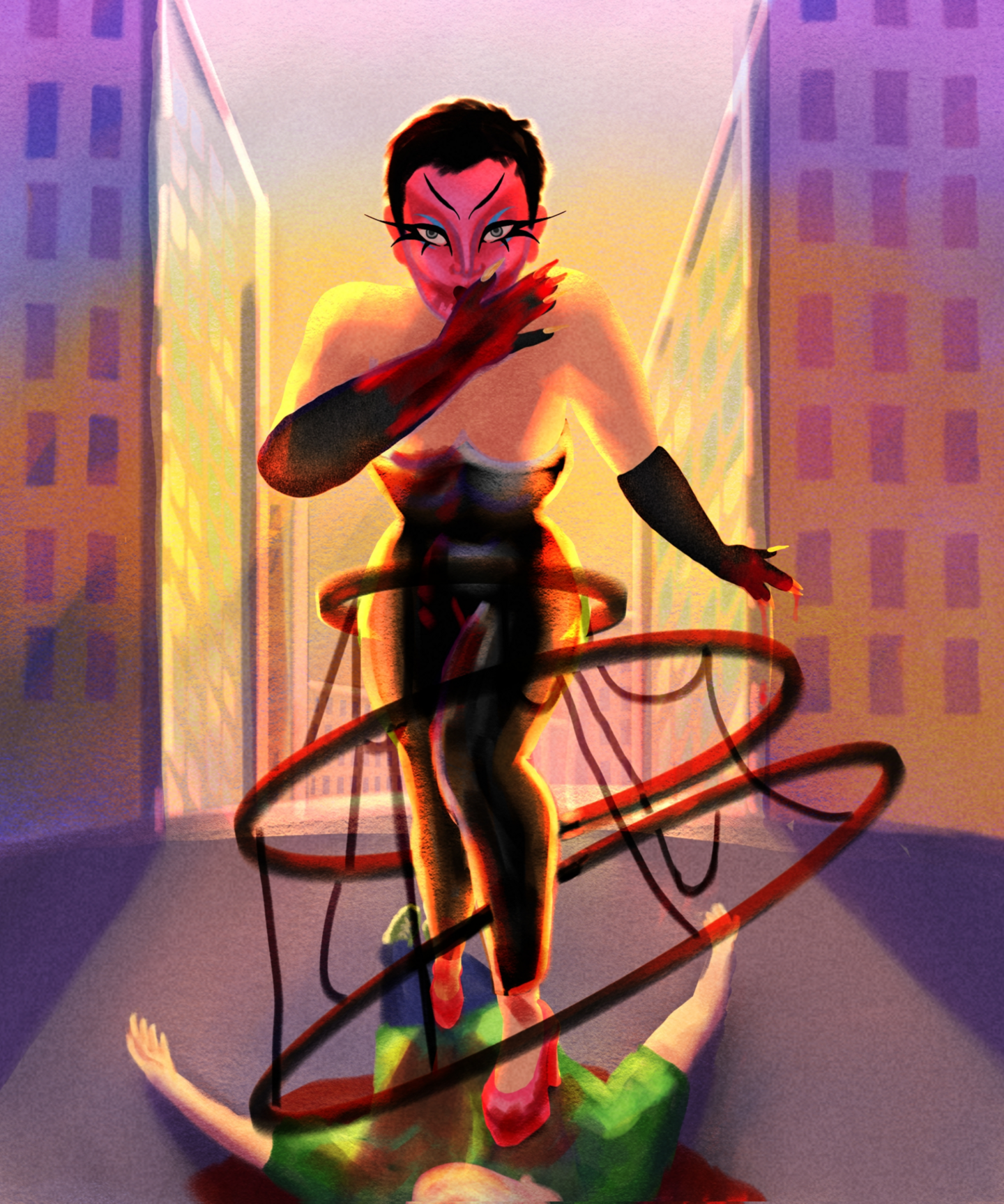 «Присцилла обмотала цепь вокруг своего кулака ещё раз, притянув мужчинку с расцарапанным лицом и сломанной челюстью еще ближе к своей груди. Его дыхание сбилось из-за крови, стекающей из носа к губе. Капелька потекла вниз… — Смотри в глаза, — Капелька судорожно потекла вверх… — А не то увидишь, на что ещё способны эти когти.»