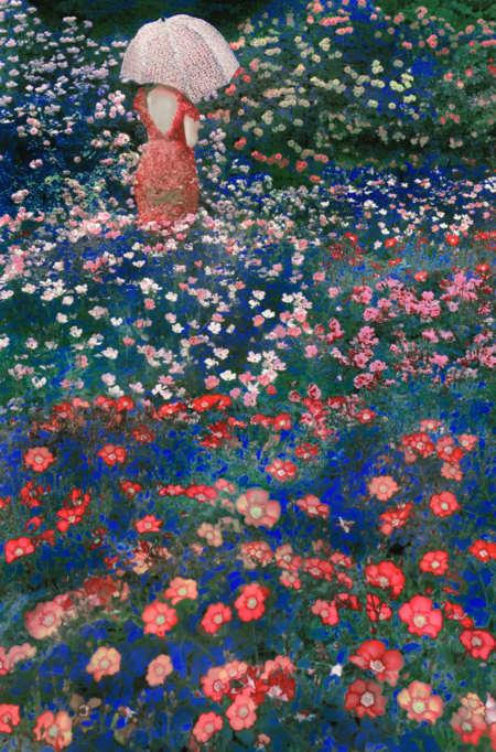 (1) Erik Madigan Heck Umbrella, The Garden, 2020 (2) Пьер Огюст Ренуар — Женщина с зонтиком в саду 1875
