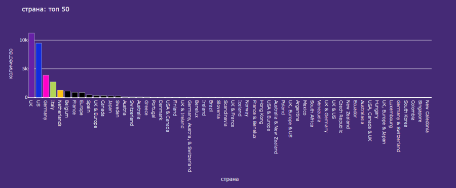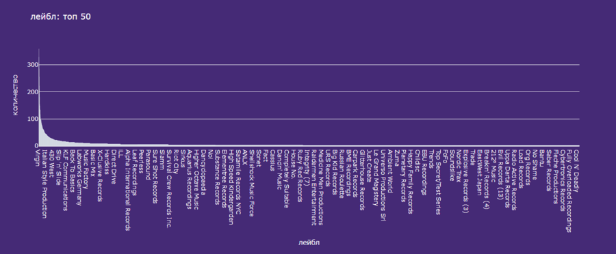 Изучая выбранный датасет, содержащий информацию о дисках и виниле с электронной музыкой, выпущенных в 1990–2000 года, я создала 5 диаграмм, которые наглядно показывают различные факторы популярности той или иной музыкальной композиции.