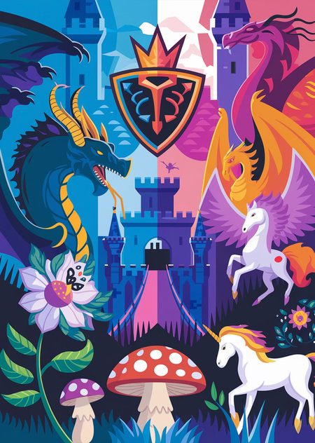 Fantasy Animals: Feature silhouettes or stylized representations of unique fantasy creatures, like whimsical dragons, majestic unicorns, or mythical beasts, to showcase the game’s magical aspect.
